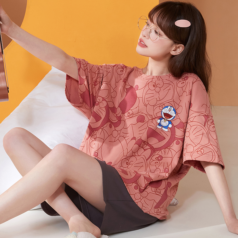 睡衣女夏季2022年新款纯棉短袖薄款可爱卡通夏天可外穿家居服套装热门设计联盟服务商