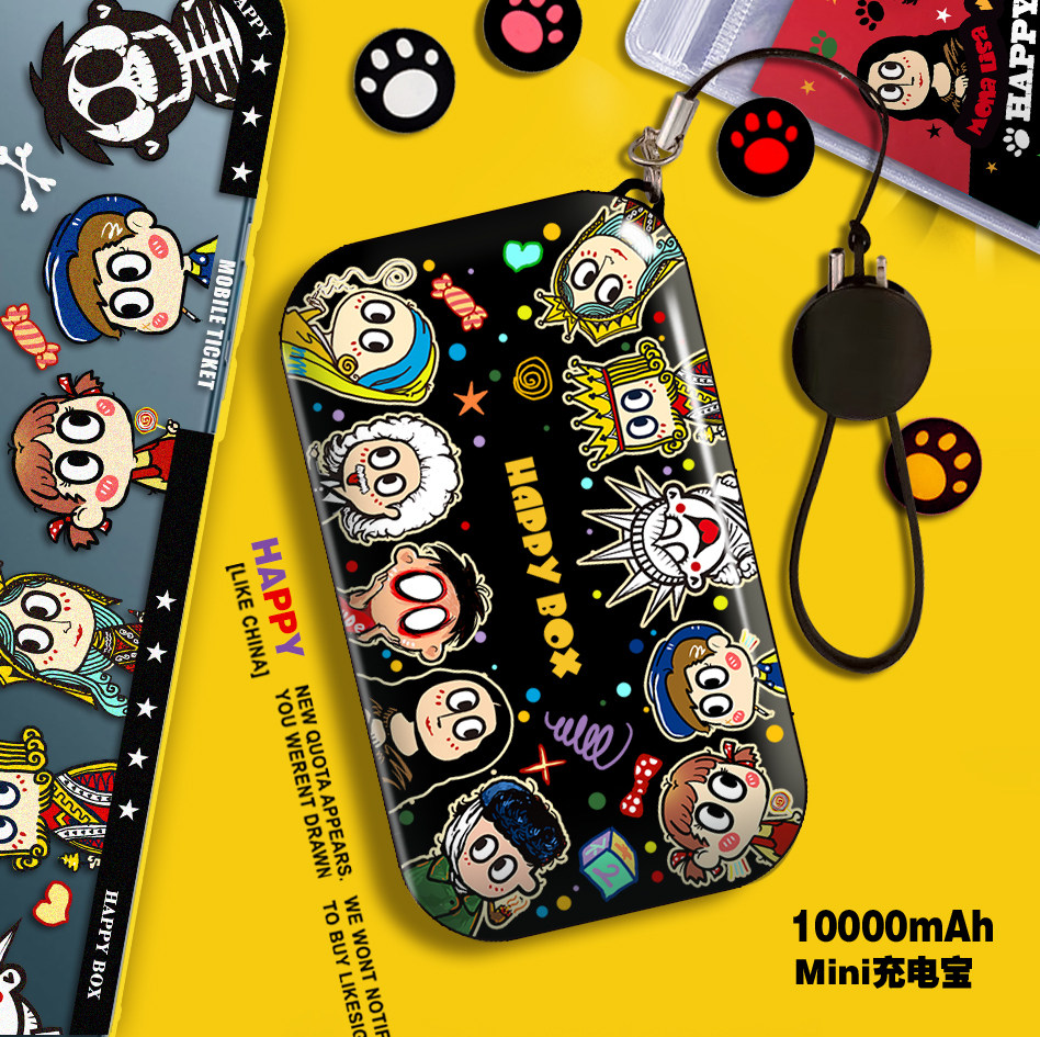 HAPPY收纳机10000毫安便携移动电源自带线快充电宝适用苹果安卓热门设计联盟服务商