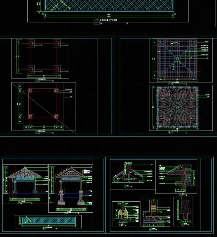 园林景观凉亭草亭草茅草亭四方亭 CAD施工图平立面剖面图设计素材热门设计联盟服务商