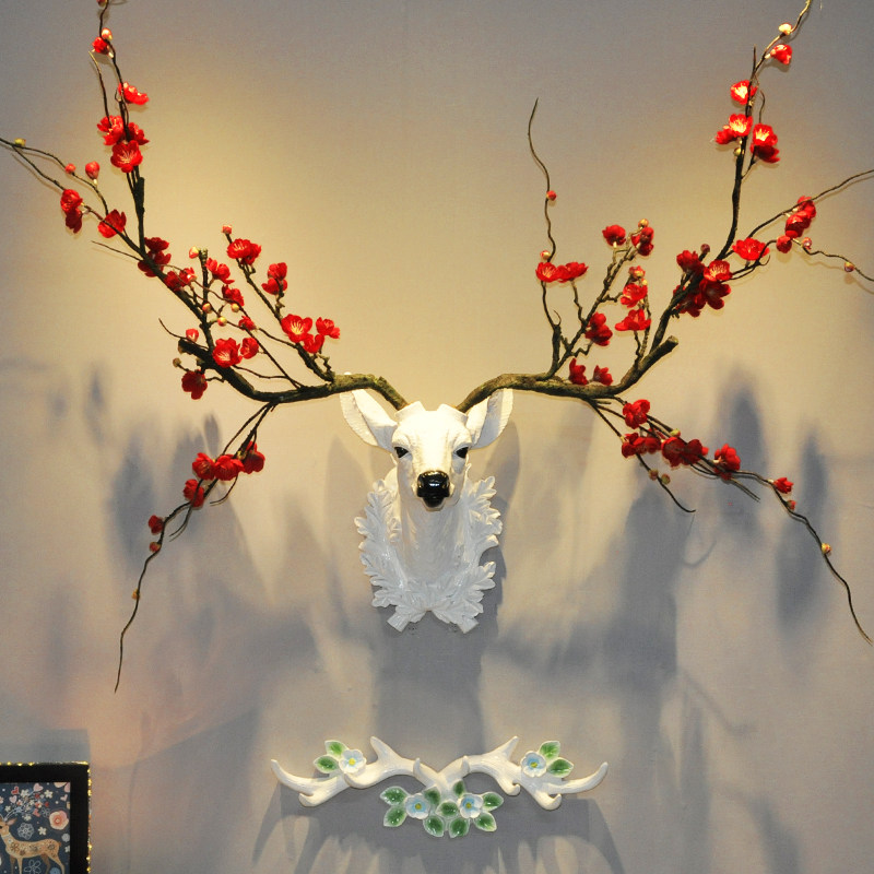 招财鹿头墙面装饰壁挂北欧风格客厅电视背景墙上装修欧式玄关挂件热门设计联盟服务商