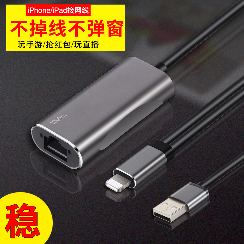 苹果手机网线转换器网络加速器iphone7/x/8/6plusMAX以太网直连网线转接口连接器ipad插有线网卡上网直播网游热门设计联盟服务商