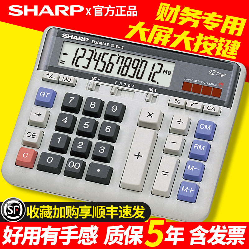 SHARP夏普官方正品EL-2135银行商务办公用计算器电脑按键大号桌面台式电子el2135计算机财务会计审计快速翻打热门设计联盟服务商