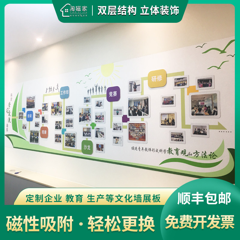 淘磁家文化墙定制设计公司企业装饰教育形象墙生产看板展板磁性双层环保免钉热门设计联盟服务商