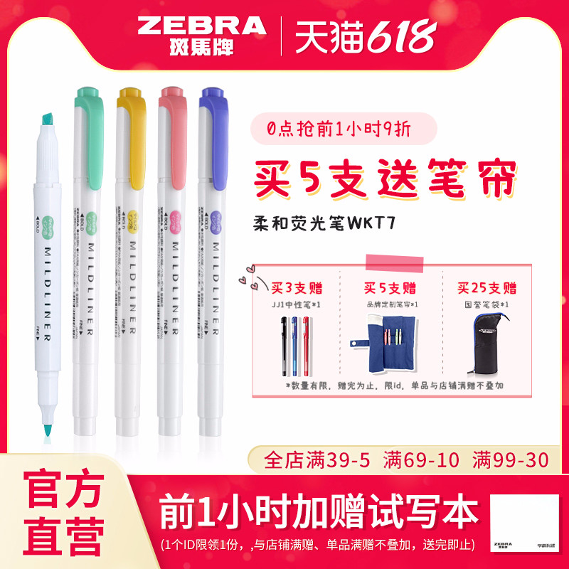 日本ZEBRA斑马旗舰店官网直营斑马荧光色笔WKT7荧光笔mildliner荧光标记笔双笔头设计手账荧光标记彩色记号笔热门设计联盟服务商