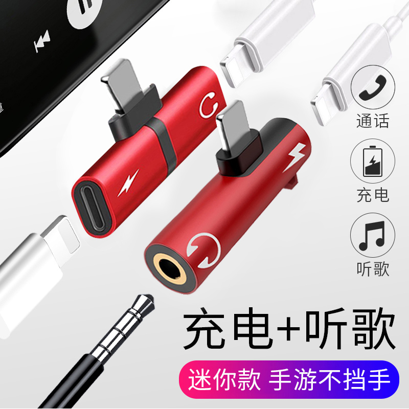 iOS苹果耳机转接头二合一3.5mm适用充电iphone转换12转换器xr手机音频x扁头8有线圆头11接口lighting圆孔2合1热门设计联盟服务商