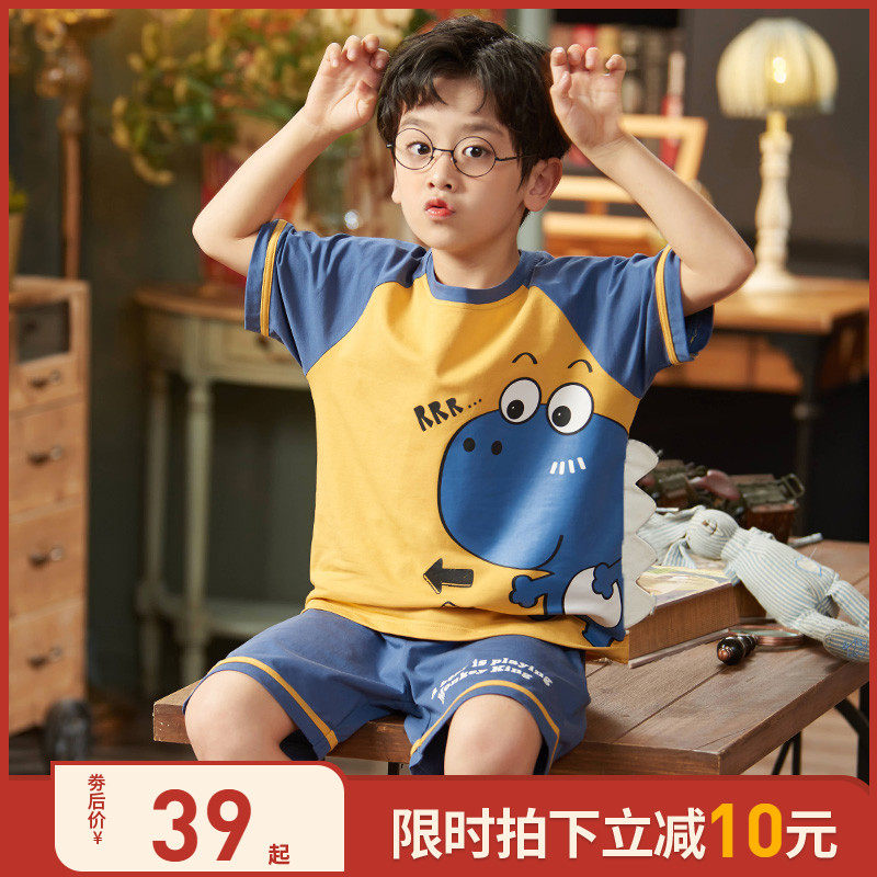 儿童睡衣男童夏季薄款纯棉短袖男孩中大童套装12岁小孩卡通家居服热门设计联盟服务商