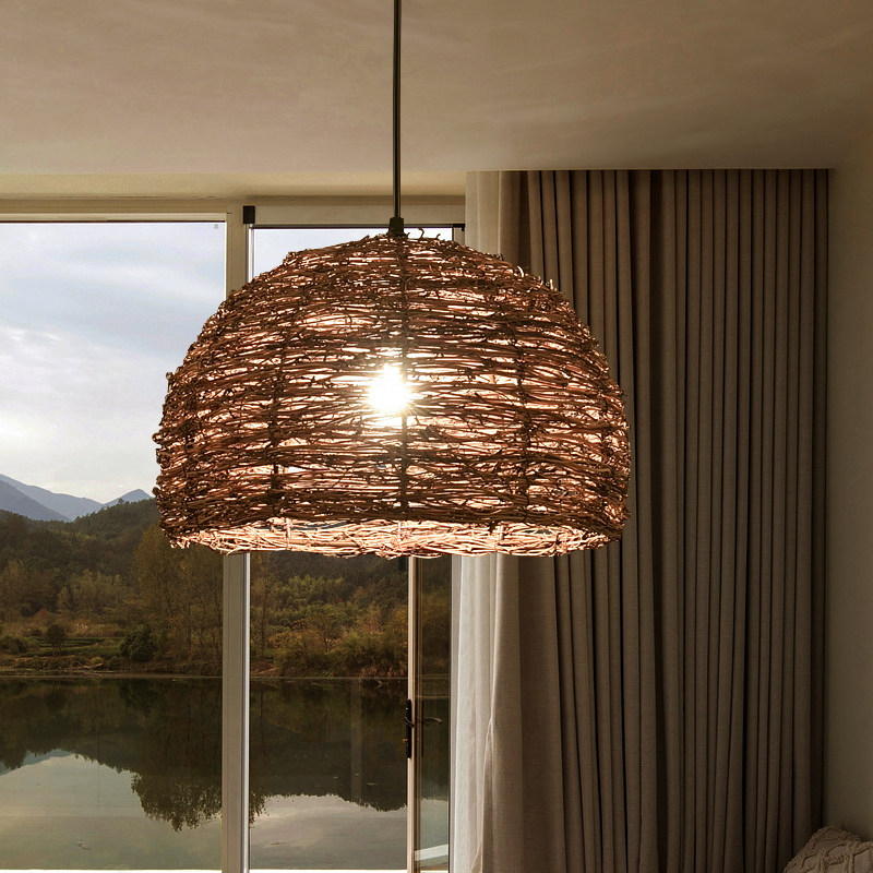 中式民宿藤艺吊灯创意艺术餐厅卧室灯日式古典禅意茶室个性灯具热门设计联盟服务商