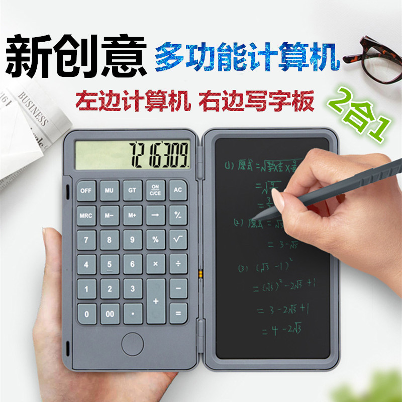 多功能商务计算器手写板翻盖便携12位显示屏创意智能计算机带写字板功能打草稿商务送礼送客户学生用可充电款热门设计联盟服务商