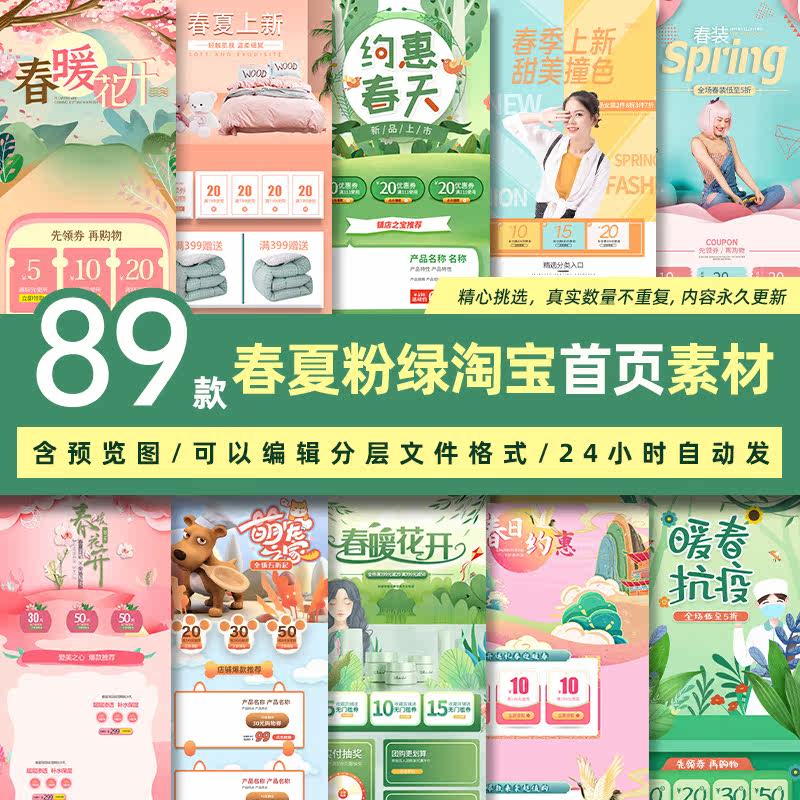春夏粉绿春暖花开电商首页装修淘宝店铺主页促销PSD设计素材模板热门设计联盟服务商